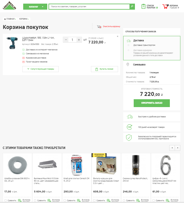Посетитель оформляет заказ. Одни ритейлеры считают, что на этом этапе ничто не должно отвлекать его от процесса, другие не стесняются рекомендовать дополняющие аксессуары или недорогие расходники.