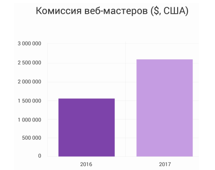 Объем комиссии веб-мастеров увеличился: с $1,6 млн. до $2,6 млн.