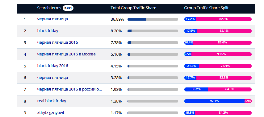 Детализируем по ключевым словам — топ из 6 тыс запросов: