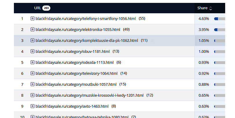 Рейтинг популярных категорий на BlackFridaySale.ru: