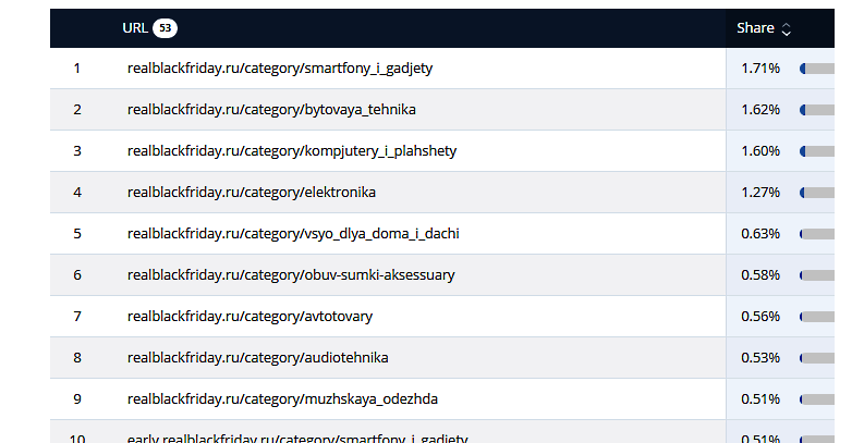 Как распределились 3,5 млн исходящих визитов с RealBlackFriday.ru?