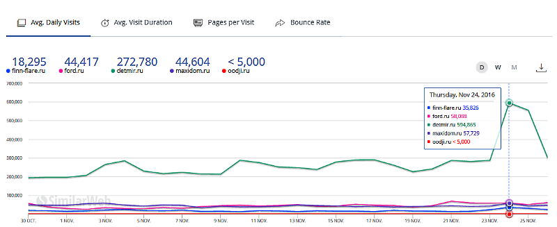 Средний прирост по трафику 24 ноября 2016 составил около 50% от среднесуточного значения.