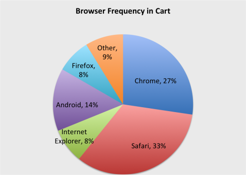 Наиболее популярным браузером у любителей скидок оказался Safari – через него было офомлено 33% заказов (на 4% больше, чем в обычные дни). Chrome использовали 27% покупателей, Android – 14%, а Firefox и Internet Explorer отдали предпочтение по 8% пользователей.