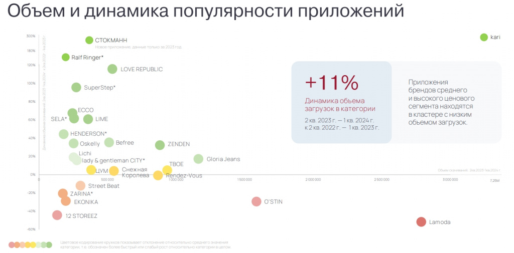 "В 2023 году мы видим, что рост стал более сбалансированным. Появились лидеры - бренды, которые готовы вкладывать средства в рынок мобильного онлайн-пространства", - добавляет эксперт.
