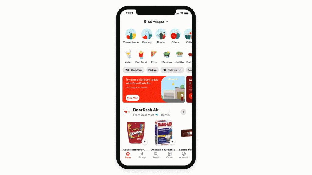 Крупный онлайн-сервис доставки еды DoorDash с помощью оператора Wing представил проект DoorDash Air. С помощью услуги клиенты смогут заказать доставку продуктов за 15 минут дронами. В приложении DoorDash товары, которые можно так получить, будут отмечены особым знаком.