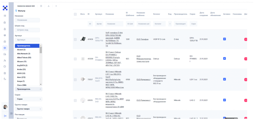 Функционал для товарных линеек;