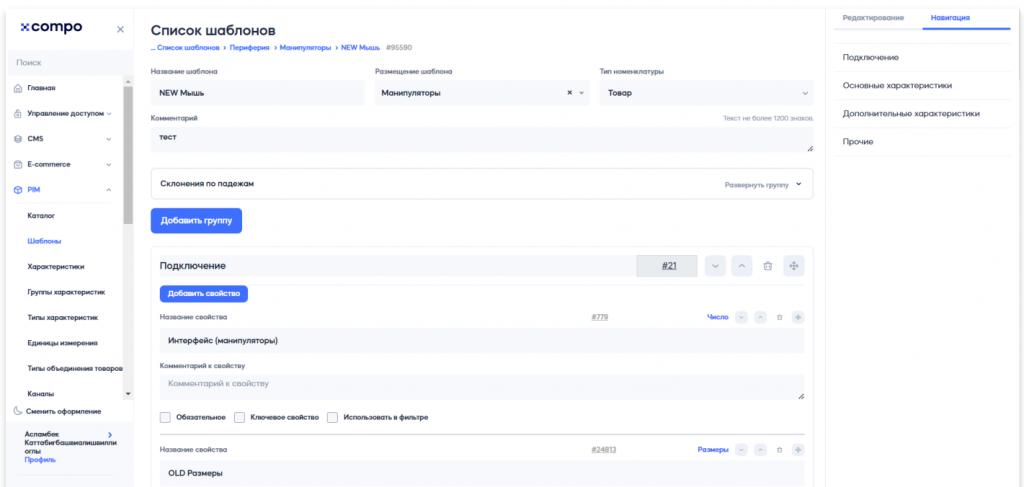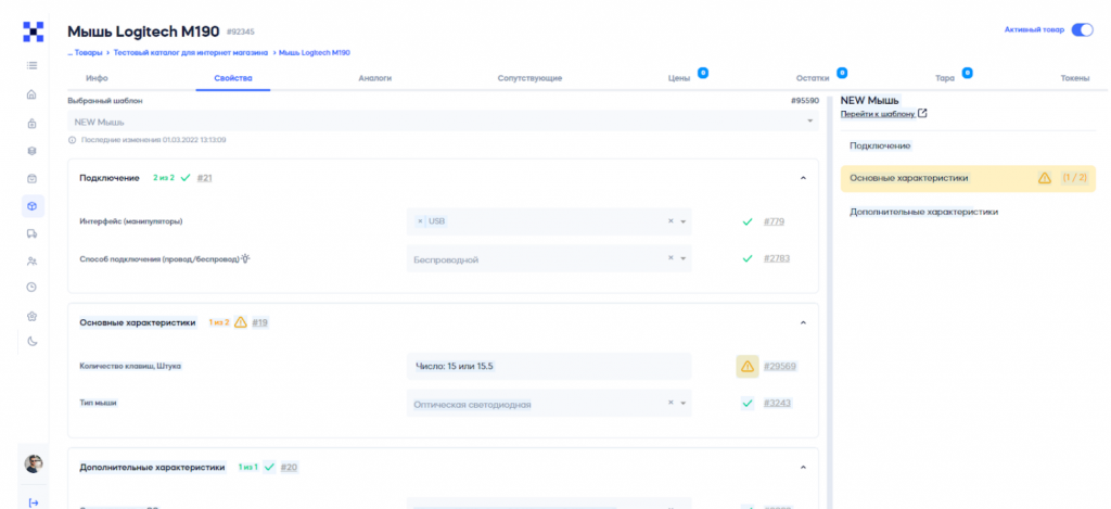 Важной функцией PIM-системы является возможность создания шаблонов карточек товаров, которые позволяют устанавливать одинаковые характеристики для товаров, привязанных к определенному шаблону.