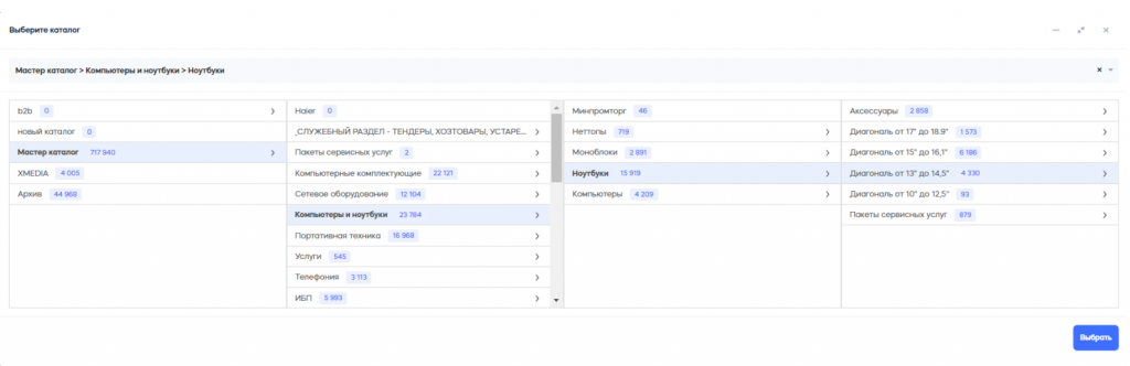 Одним из ключевых компонентов PIM-системы является мастер-каталог, который объединяет все данные о товарах, а на его основе создаются каталоги для различных витрин, таких как мобильные приложения, маркетплейсы, оптовые платформы и т.д.