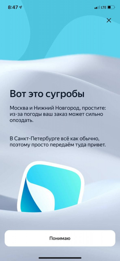 В компании говорят, что снегопад сильно затрудняет передвижение курьеров и поэтому время доставки больше обычного. Там заверили, что увеличивают количество курьеров на смене, а также информируют о задержках пользователей, чтобы они смогли подстроить свои планы.
