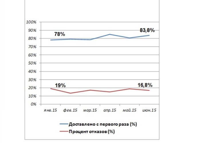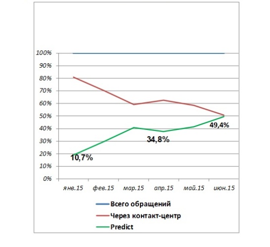 Так, на примере известного монобрендового интернет-магазина одежды можно сказать, что за первое полугодие 2015 года количество звонков в call-центр снизилось на 30%, в то время, как число онлайн-обращений к сервису Predict увеличилось на 39%. Процент отказов сократился на 2%, а объем заказов, доставленных с первого раза, наоборот, вырос на 6%.