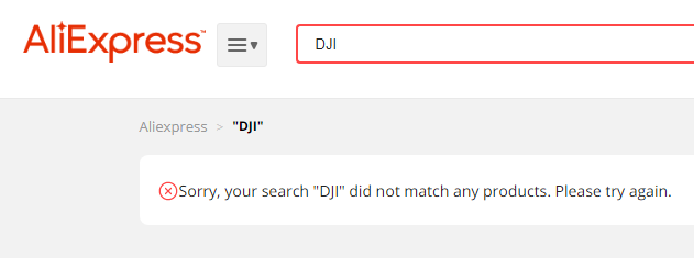 Несмотря на то, что товарные карточки продукции DJI остались на Aliexpress, при переходе по ссылкам на товары магазин выдает ошибку "страницы не существует", а приобретение комплектующих и сумок для хранения дронов стало затруднительным. Днём 2 марта можно приобрести другие продукты, такие как стабилизаторы. Однако уже ночью любое упоминание товаров компаний DJI и Autel вообще исчезло из карточек товаров.