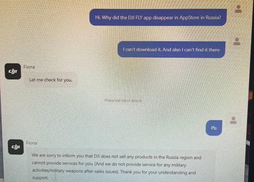 Служба поддержки DJI сообщила, что компания не продает свою продукцию в Россию и не предоставляет услуги российским пользователям. "Мы также не предоставляем услуги для какой-либо военной деятельности и вооружений",- добавили в службе поддержки.