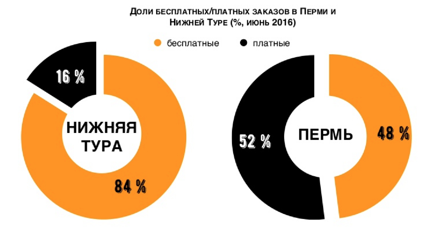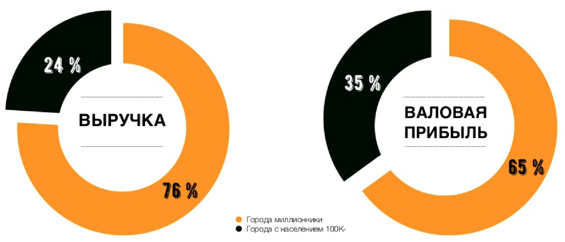 По словам представителя E96, в среднем экономика подразделений, работающих в городах с населением до 100 000 человек, в 4-7 раза лучше, чем в городах-миллионниках, доля бесплатных заказов выше, а валовая выручка больше. Однако прибыль генерируют крупные города, поскольку уровень потребления в них гораздо выше.