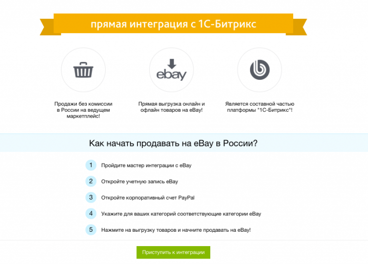 Интернет-магазины на платформе «1С-Битрикс» получили возможность быстрой интеграции с платформой eBay. Как сообщается, бесплатно подключиться к торговой онлайн-площадке можно будет за 3 часа.