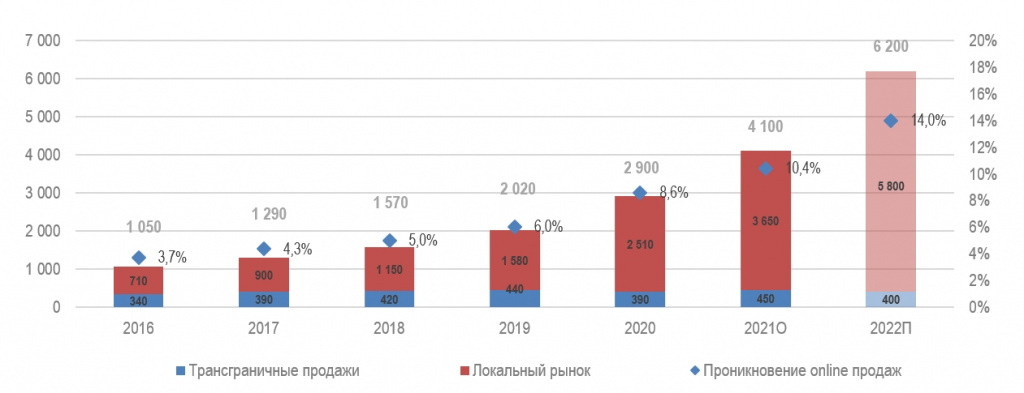 - Infoline (октябрь): Рост рынка электронной коммерции в 2022 году составит 40%.