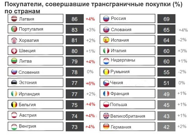 Интересно, что согласно E-shopper barometer 2017, Россия не входит даже в десятку стран Европы по кроссбордеру.