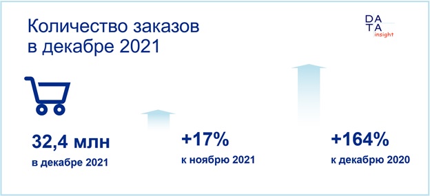 Предыдущий ноябрьский рекорд количества заказов был превышен сразу на 17%, или, в абсолютном выражении, на 4,6 млн заказов. Рост по сравнению с декабрем 2020 года – более чем в 2,6 раза. Динамика в деньгах меньше, но тоже значительная.