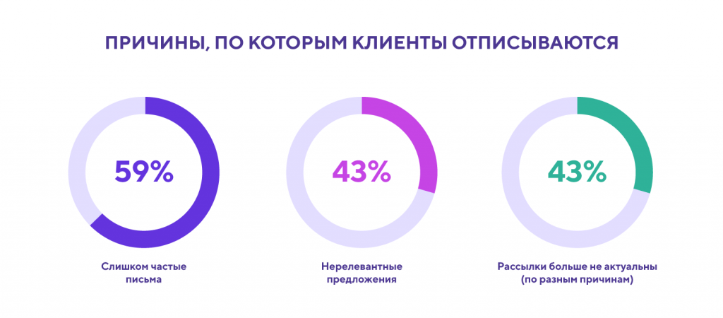 - слишком частые письма - 59%,