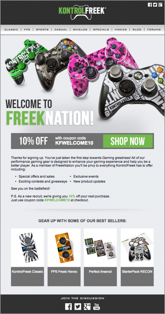 KontrolFreek позитивно оценивают механику: клиенты совершают покупки из приветственных писем в два раза чаще, чем из других имэйлов.