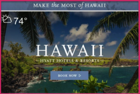 Например, сеть отелей Hyatt транслирует в письме температуру воздуха на курорте, наводя подписчиков на мысль о солнечных Гавайях.
