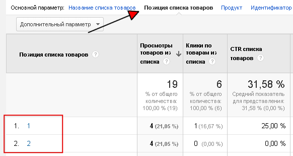 Позиция товара в списке – это номер позиции, на котором был отображен товар. Необходимо использовать целые числа, нумерацию вести с номера 1.