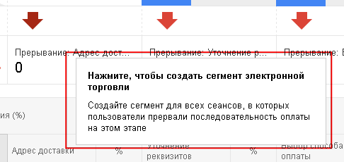 На основе этапов оформления покупки можно создавать сегменты посетителей: