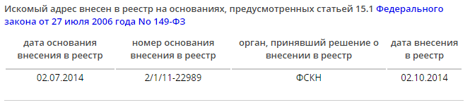 Информация об этом еще вчера присутствовала сайте Роскомнадзора: