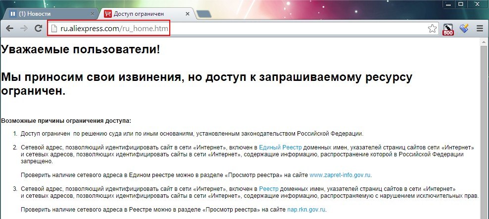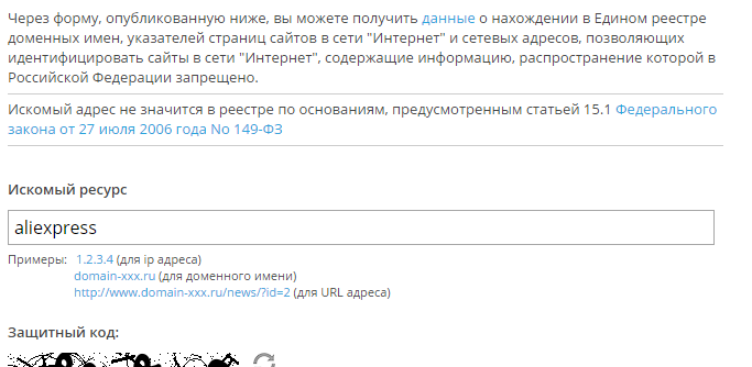 Несмотря на это уже сегодня, сайт Роскомнадзора сообщает, что никакого сайта с упоминанием AliExpress в заблокированных списках нет.