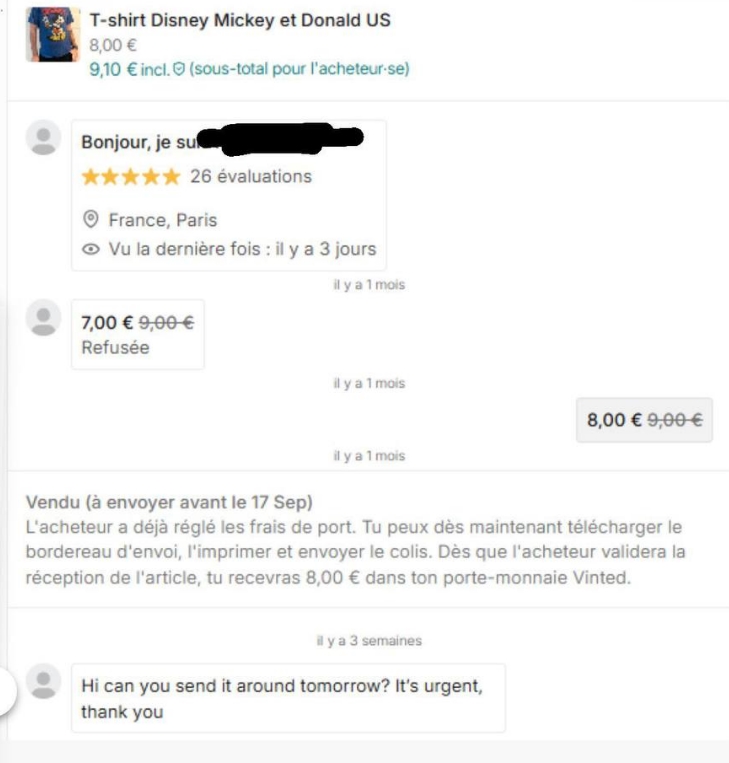 Оказалось, что футболку с Микки Маусом, приобретенную во Флориде всего за 8 евро, а затем проданную на Vinted, дизайнеры Coperni включили в свою новую коллекцию. При этом представитель бренда, купивший футболку, просил отправить посылку как можно быстрее. Интересно, что раньше она изначально стоила почти 10 евро, однако дизайнеры попросили скидку.