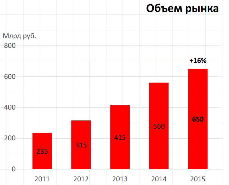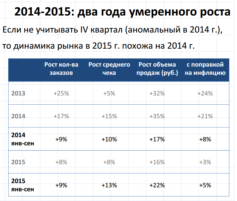 Соответственно, по оценке Data Insight, рост рынка в 2016 году будет +20% к 2015. И из них +12% – за счет увеличения количества покупок, а не среднего чека. Это важные и хорошие новости.