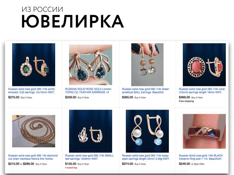Глава российского подразделения американской торговой площадки eBay Илья Кретов рассказал, какие товары отечественных производителей ждут зарубежные пользователи. На своей странице в Facebook он сообщил, что в 2016 году экспорт российской продукции на eBay вырос на 50%.