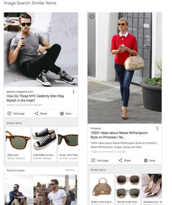 В апреле этого года для мобильной версии Google и приложения на Android добавили новую функцию поиска по картинкам — «Похожие товары». За счет машинного зрения она распознает аксессуары на фотографиях и предлагает похожие товары в интернет-магазинах.