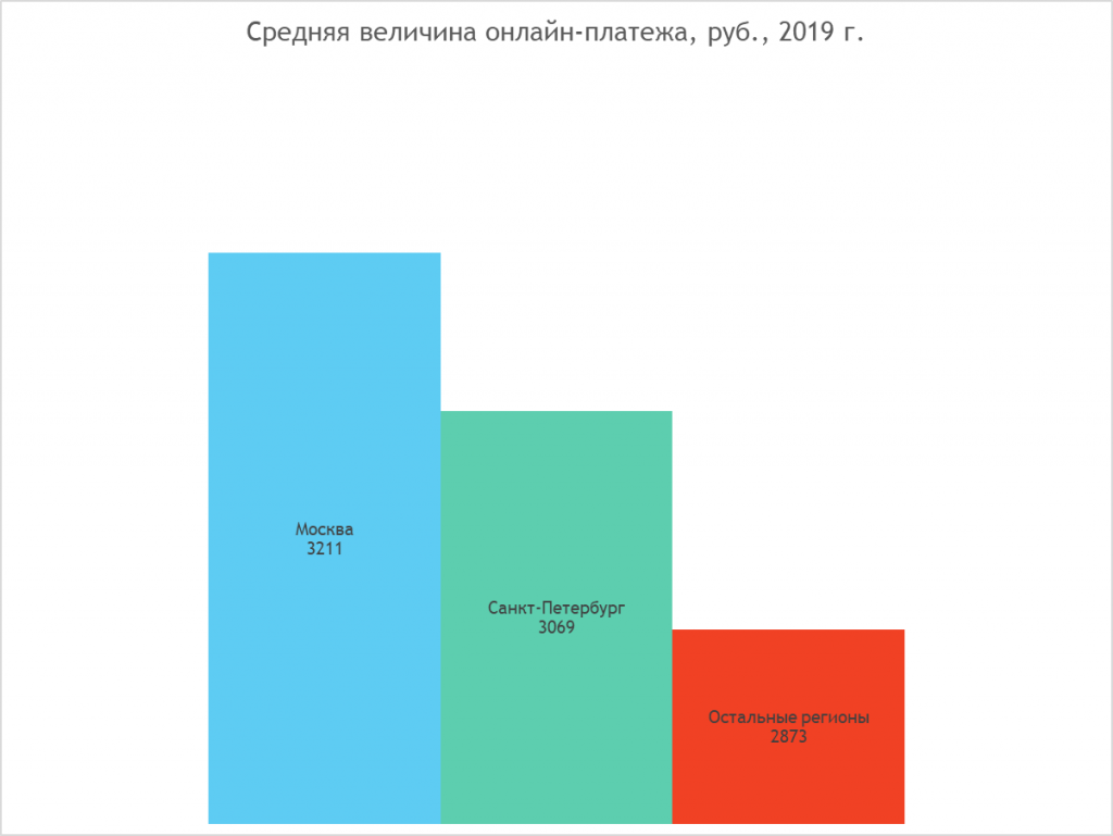 В среднем за один онлайн-платеж жители Москвы тратят 3211 рублей, Санкт-Петербурга – 3069 рублей, во всей остальной стране – 2873 рубля.