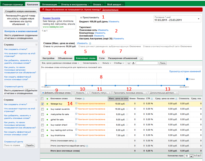 - Ваши ключевые слова, по которым ваши объявления будут выдаваться в поиске Google.