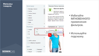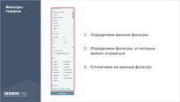 С поиском мы все выяснили. Давайте обратим наше внимание на фильтр товаров. Фильтры как правило делятся на очень важные и второстепенные. В нашем случае к очень важным мы можем отнести фильтр по типу белья и размеру. Фильтр же по тегам и цвету можно отнести к вспомогательным и не очень важным, так как особой погоды они не делают. Соответственно, мы можем достаточно безболезненно отказаться от фильтра по цвету и тегам и отключить их на время рекламной акции.