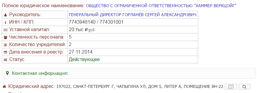 Согласно чешскому коммерческому реестру, компания Hammer Werkzeug s.r.o. создана только лишь 20 февраля 2017 года. Кстати, её создатель - киприот Georgios Chr, а уставной капитал равен примерно 15 000 рублей.