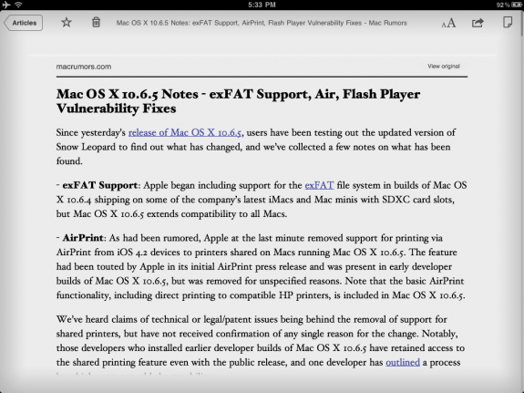 Один из ключевых плюсов – собственное приложение под iOS, позволяющее очень удобно читать сохраненные вами материалы в виде журнальных статей. Must have всем жаждущим новых знаний!