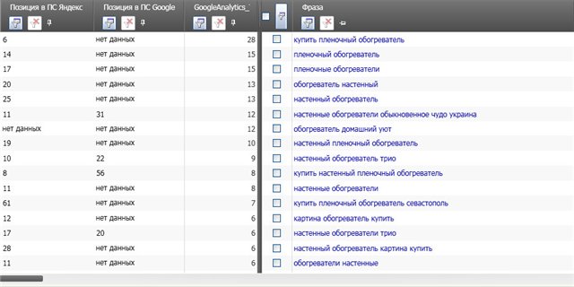 Судя по Google Trends и словам поставщика пик заинтересованности людей припадал на конец ноября и середину декабря, дальше плавный спад до февраля. Как показал себя конец января (считай начало февраля) люди интересуются, но покупают крайне мало, думаю все догадываются почему . SEO. На руках домен 4го уровня – com.ua +поддомен специально для обогревателей. Бюджет был, но времени мало. Да простят меня коллеги, СЕО занимался крайне мало (об этом и жалею) – дефицит времени + человеческая лень. По факту сделал проект в Руках, настроил стратегии и стартанул. Дальше не следил. SEO трафик начал получать спустя 3 недели после индексации сайта ботами ПС. Закрепляю некоторые позиции сайта по G (UA) и Ya (Днепропетровск) из KC (без графика изменений, за 7 февраля).