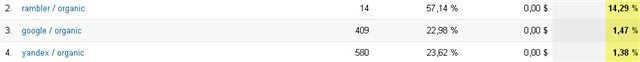 Теперь вопрос, что же эффективные SEO (которым я толком немог заняться) или контекст? Вопрос сложный, т.к ~65-70% заказов приходились на телефон (может кто знает как замерять? ). Но судя по характеру переходов и поведению посетителей, выиграл контекст где-то на процентов 20.