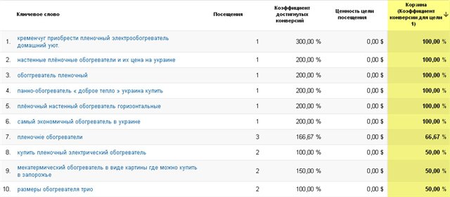 Некоторые из конверсионных запросов.
