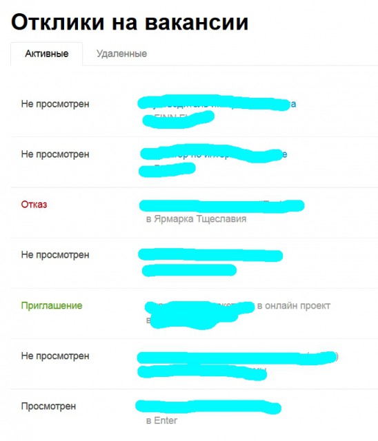 В итоге просто нет времени на поиск и реакцию на вакансии. Вот яркий пример из последних 7 моих откликов (на большей выборке статистика подтверждается):