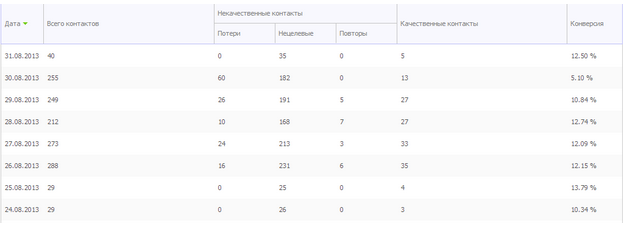 Общее количество перешедших посетителей - нецелевые - не дозвонившиеся - повторные обращения от одних и тех же посетителей.