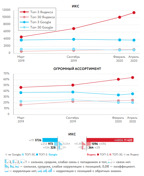 "Выдача монополизирована крупными интернет-магазинами. Таким образом, поисковый ландшафт для пользователя становится более однообразным, а мелким и средним игрокам становится все сложнее конкурировать за позиции. С другой стороны, поисковики предлагают пользователям наиболее популярные и надежные сайты, удовлетворяющие максимально широкую аудиторию", - поясняется в отчёте.