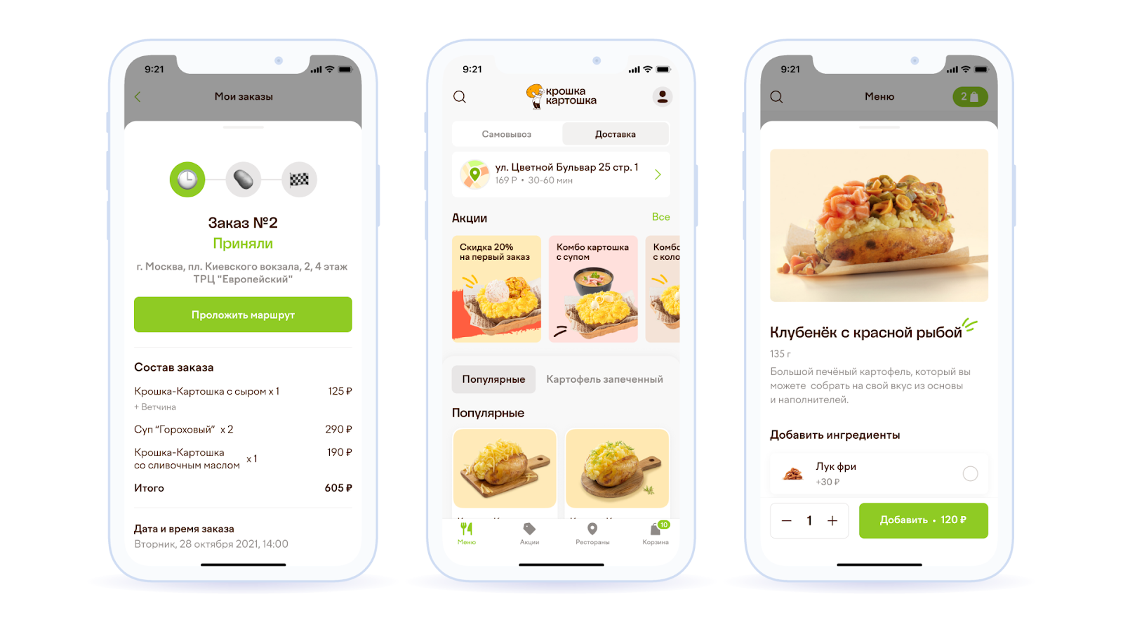 Именно такая логика сподвигла сеть кафе быстрого питания «Крошка Картошка» разработать мобильное приложение. Заказчик посмотрел тренды, проанализировал их, и понял, что может прямо сейчас откусить большой рынок у централизованной доставки с помощью собственного приложения.