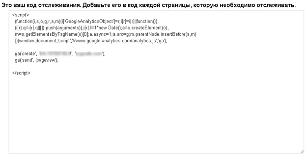 После подтверждения соглашения система предложит вам разместить новый код для отслеживания посещаемости, который в разы короче (и функциональнее) предыдущей версии кода от Google Analytics.