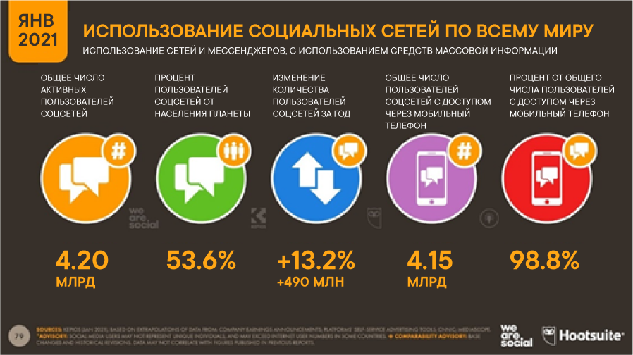 Вместе с этим изоляционные ограничения открыли зону роста для еще одной ниши — для социальных сетей. Причем росли они всесторонне. Согласно отчету о состоянии цифровой сферы We Are Social и Hootsuite: