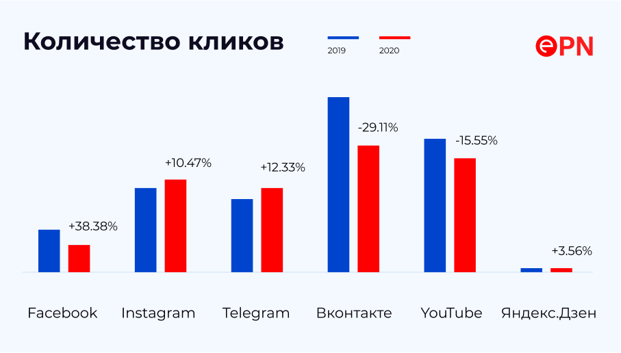 Данные ePN по кликам из социальных сетей за 2019 и 2020 гг