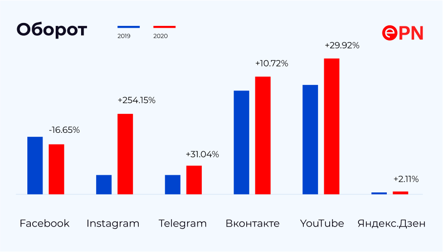 Данные ePN по обороту из социальных сетей за 2019 и 2020 гг