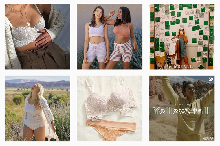 Под хэштегом #AerieReal в Инстаграме уже опубликовано более 200 тысяч фотографий. Некоторые из них Aerie репостит в свой аккаунт.