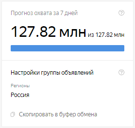 По мере выбора таргетингов система покажет возможный недельный охват кампании. Это поможет в дальнейшем управлять ставками и оптимизировать бюджет.